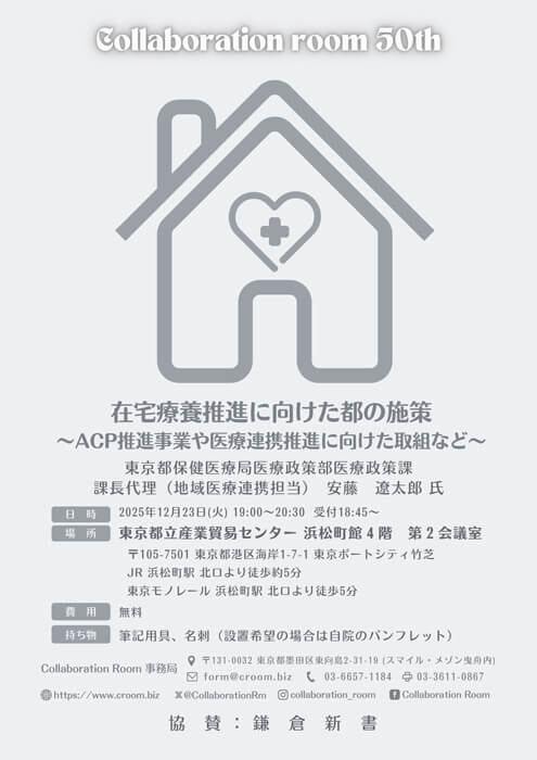 CollaborationRoomは、医療連携に従事する方または介護施設の管理者・相談員等を対象としたコミュニティです。